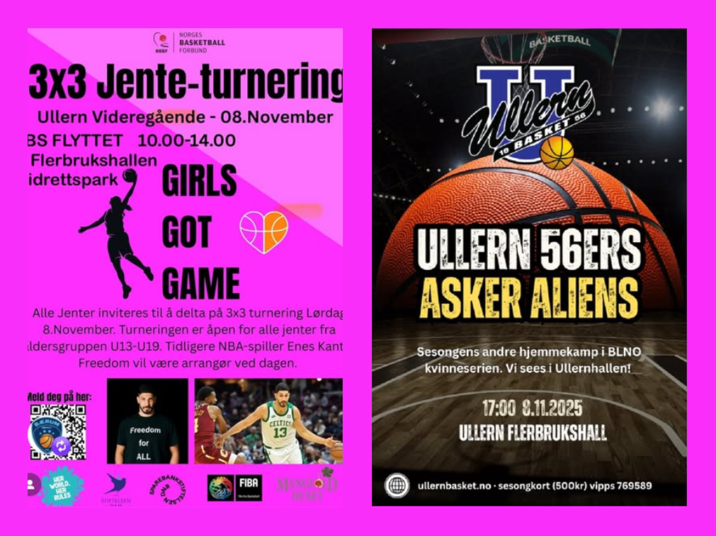 I flerbrukshallen blir det 3x3 action fra kl 14:00 for alle ungdomsjenter U13 - U19. Påmelding er dok påkrevd, via QR koden på plakaten.