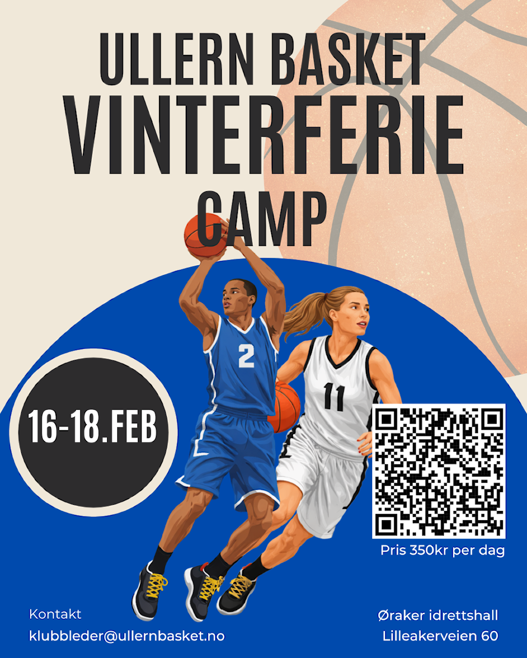 Også i år arrangerer Ullern Basket vinterferiecamp. I år gjennomfører vi treninger fra mandag til onsdag klokken 9 til 15 i Ørakerhallen. Prisen er 1050 kroner, eller 350 kroner per dag, og det er mulig å delta kun enkelte dager. Campen er åpen for alle spillere i alderen 7 til 16 år, og vi håper å se mange spillere i hallen. Som vanlig blir campen en god kombinasjon av individuell ferdighetstrening og mye spill, ettersom vi er midt i sesongen.